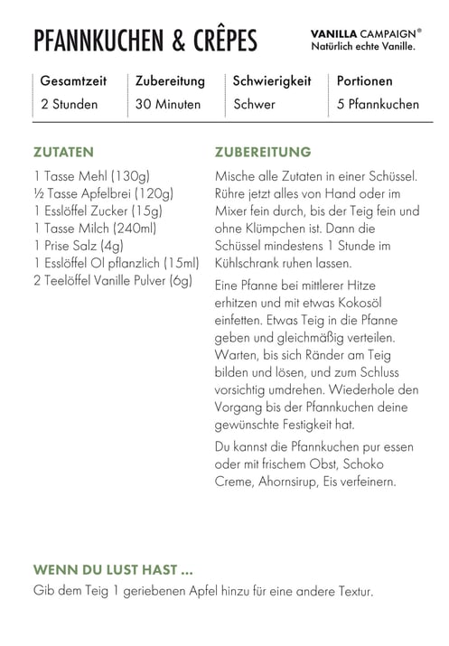 2 Teelöffel Vanille Pulver (6g)