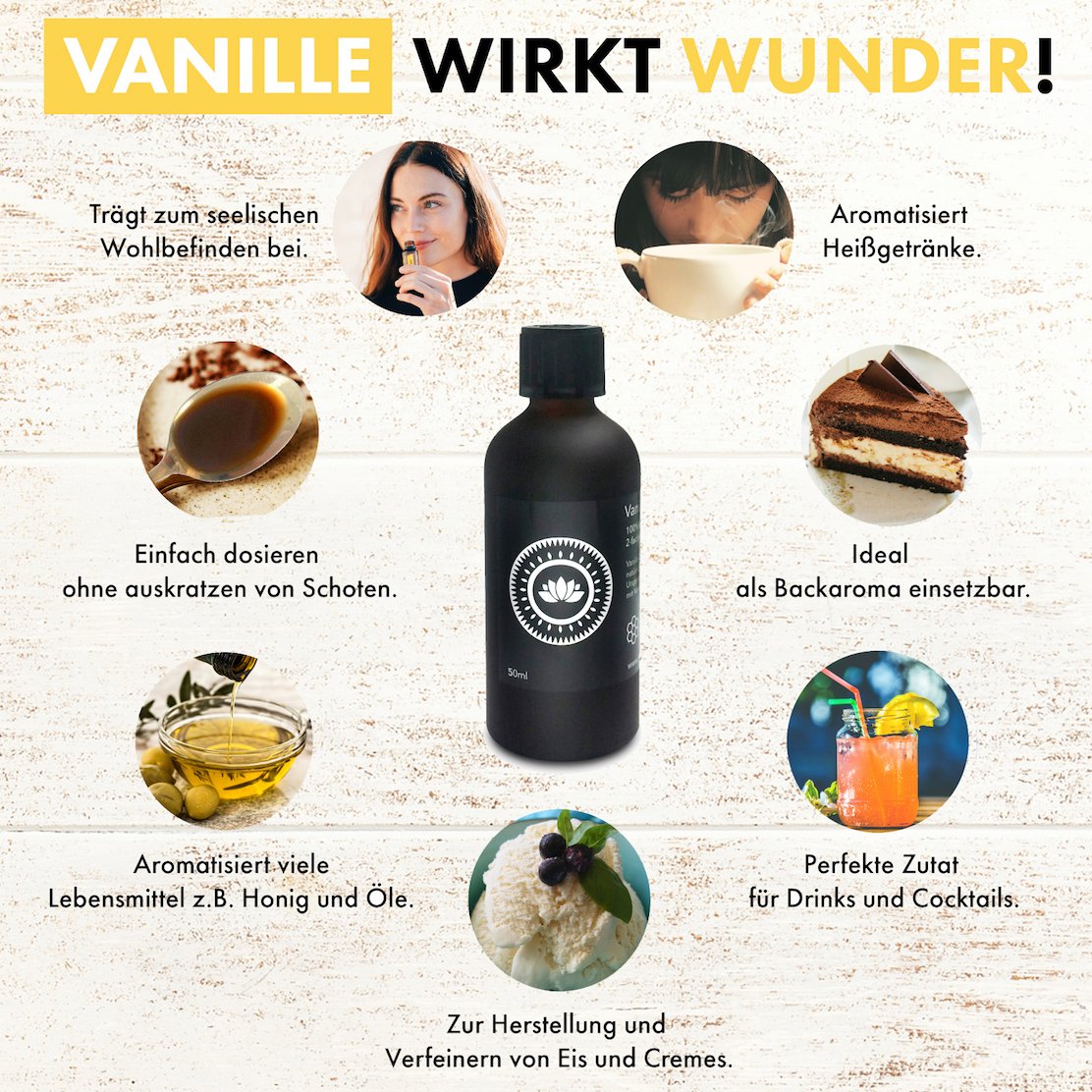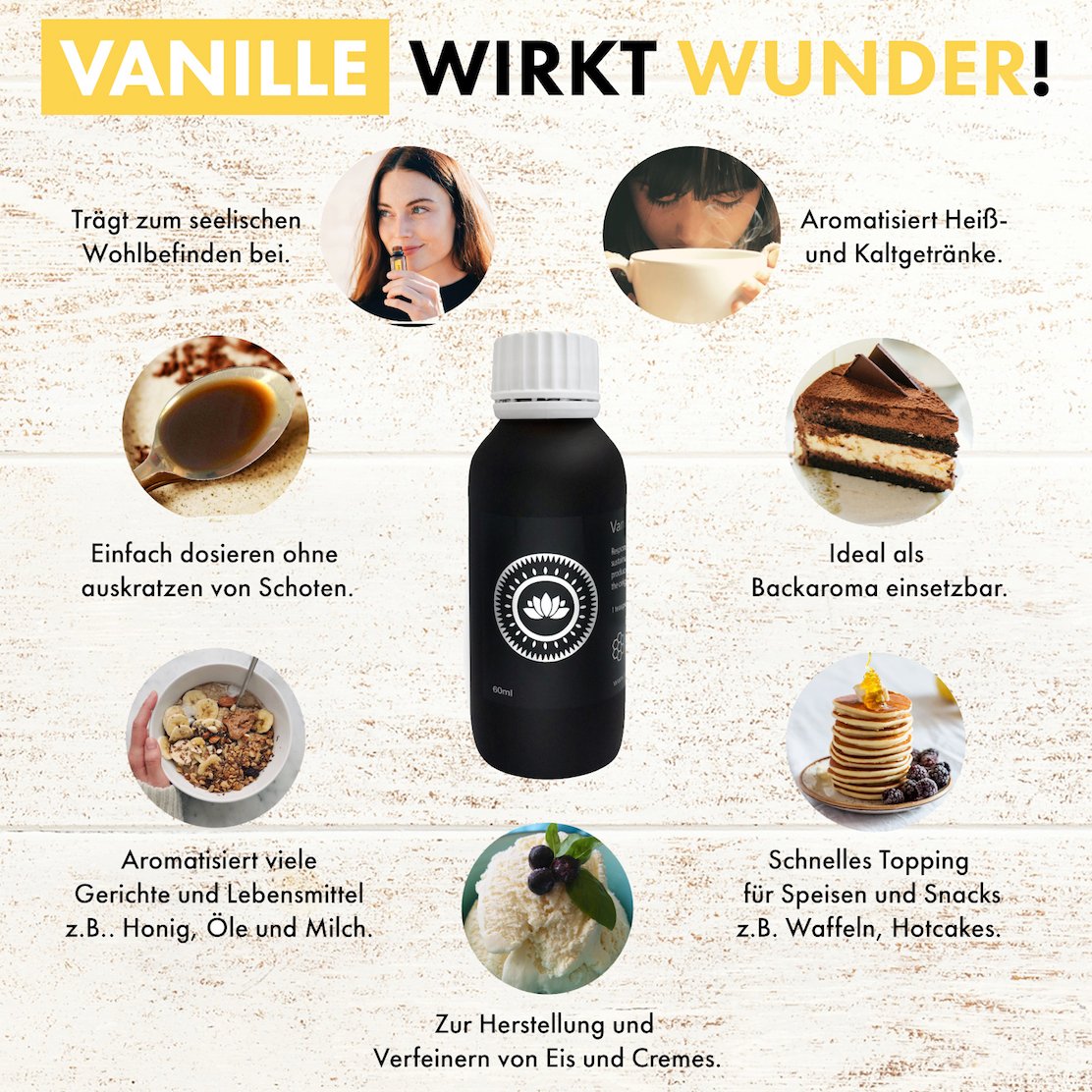 Hauptsächlich zum Backen. Aber teilweise kannst du es auch zum aromatisieren von Flüssigkeiten, Lebensmitteln und kalten Speisen einsetzen.